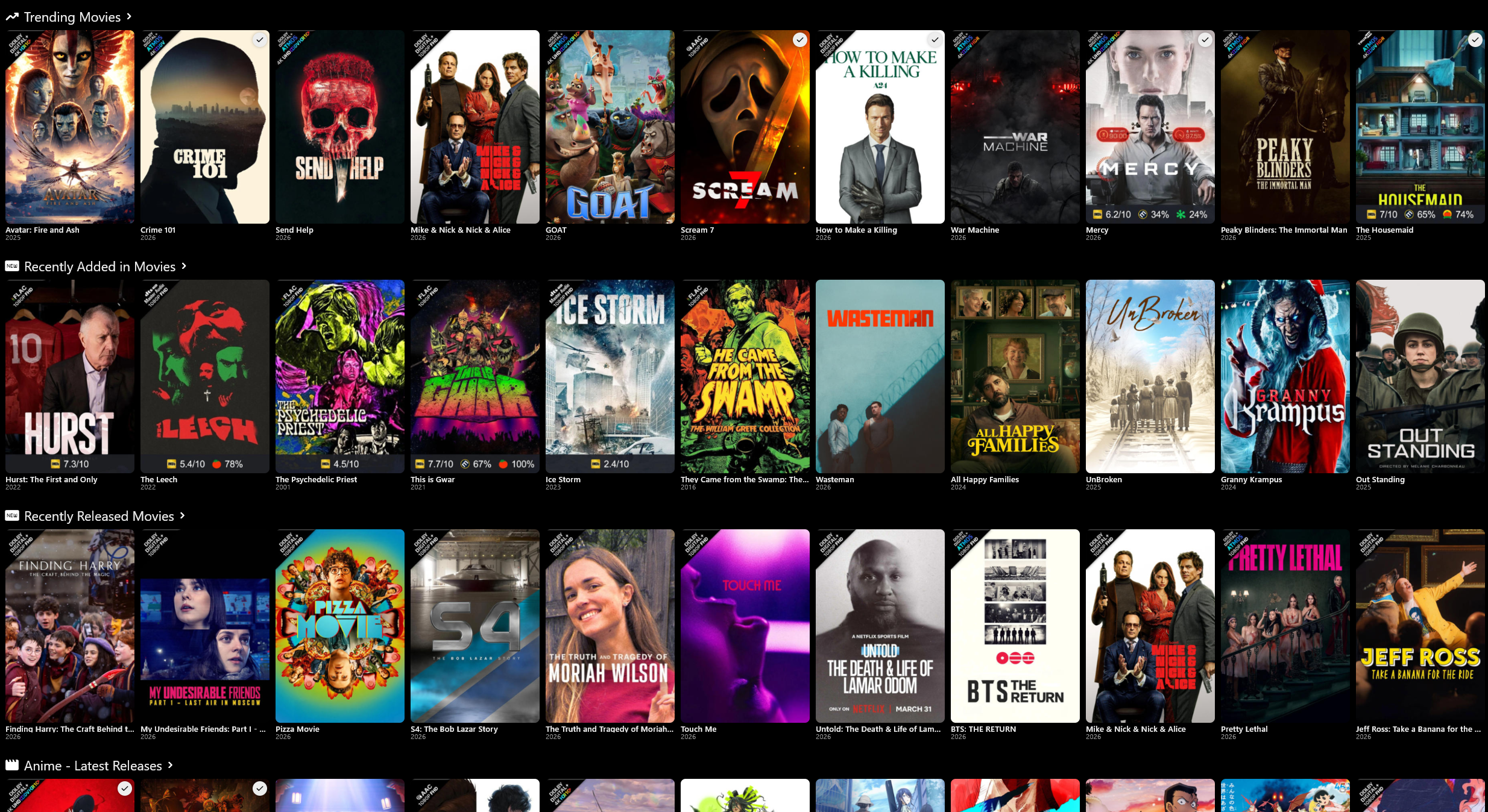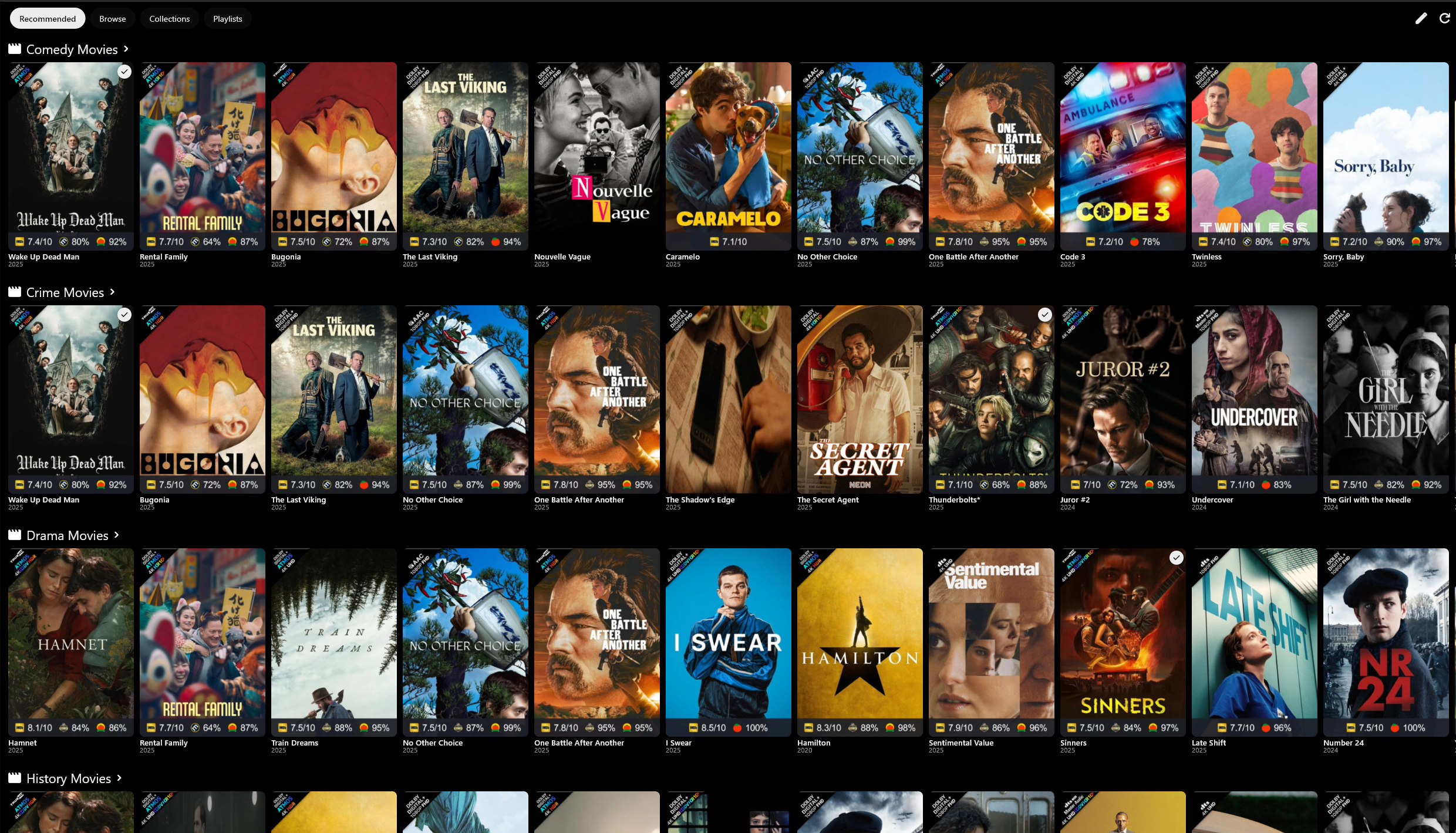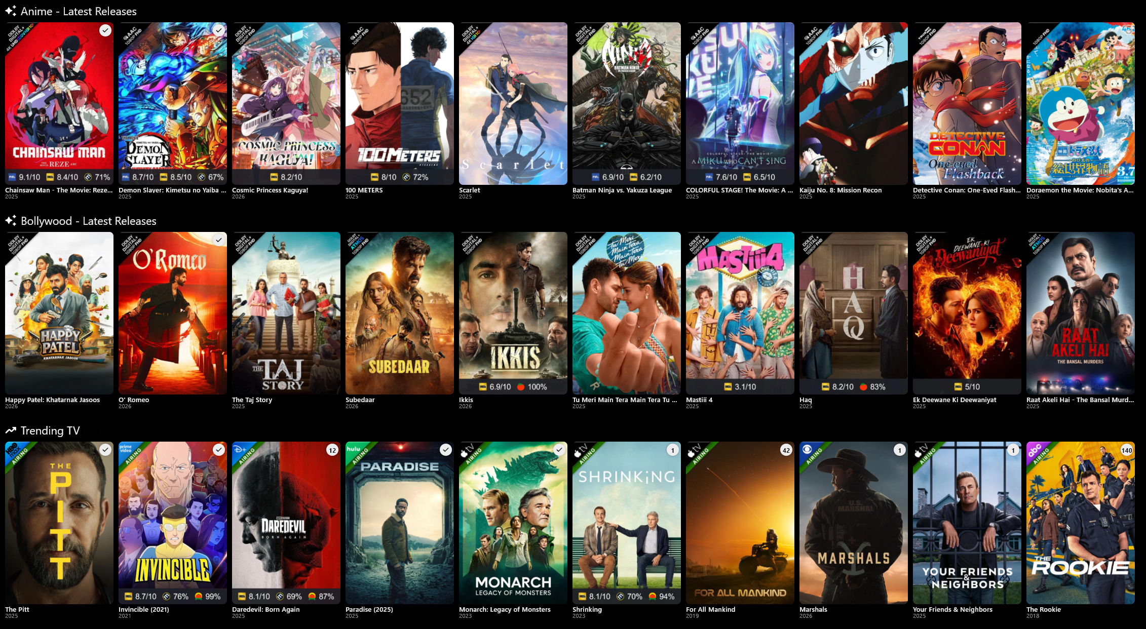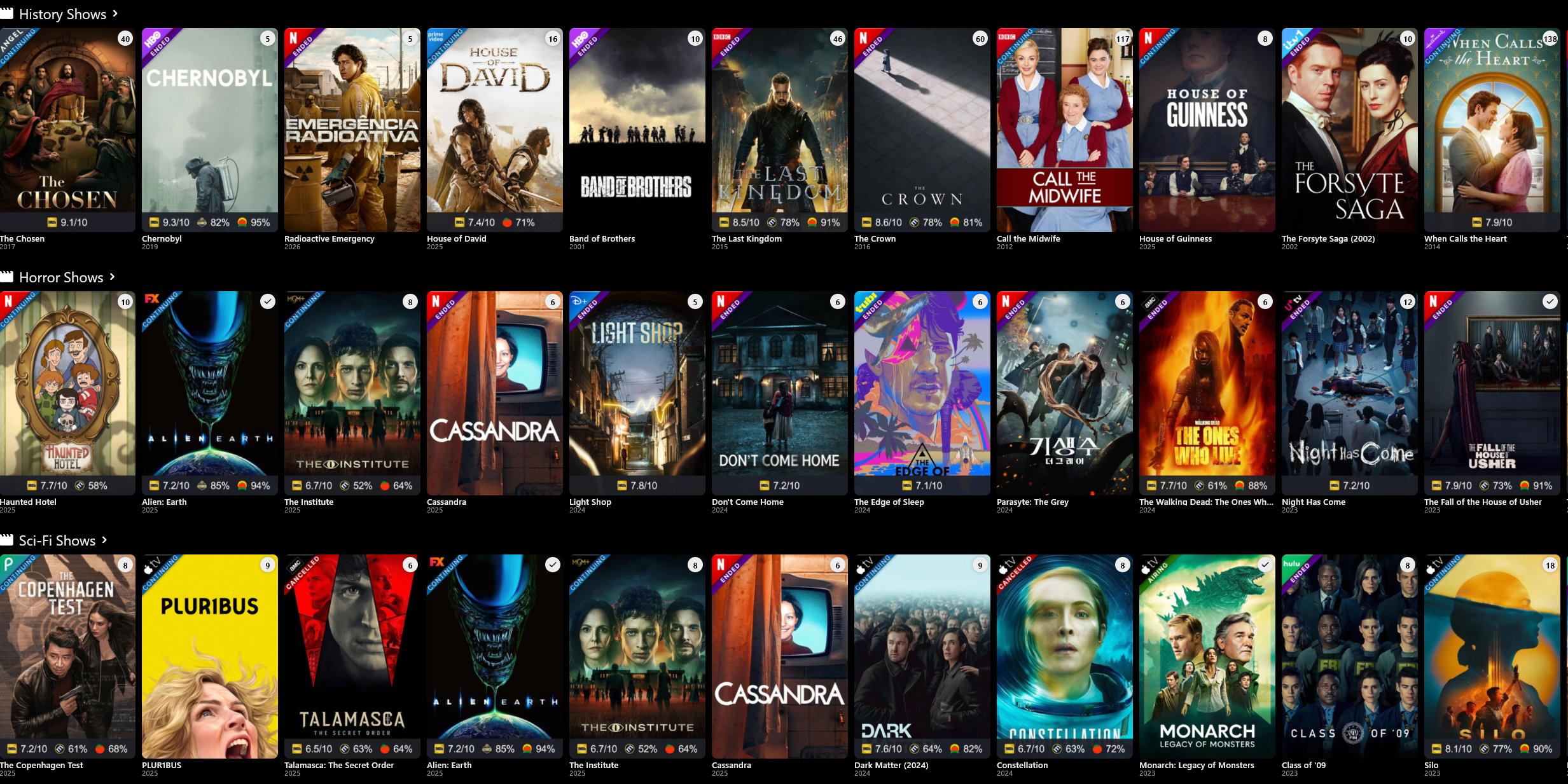 Like Letterboxd, but for watching. Curated genre lists, trending picks, and fresh additions — always something worth putting on.